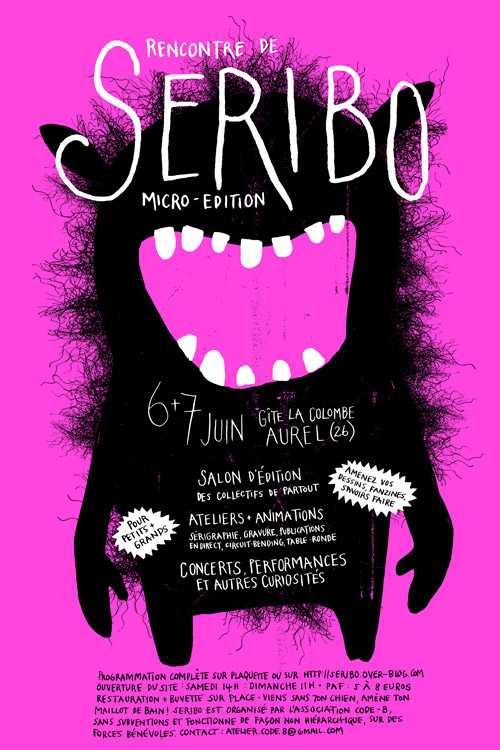 Avec l'atelier associatif Code b (Divajeu- 26), on remet le couvert cette année pour une 5eme édition de SERIBO, week-end de rencontre autour de l'art imprimé, et du multiple, mais pas que...